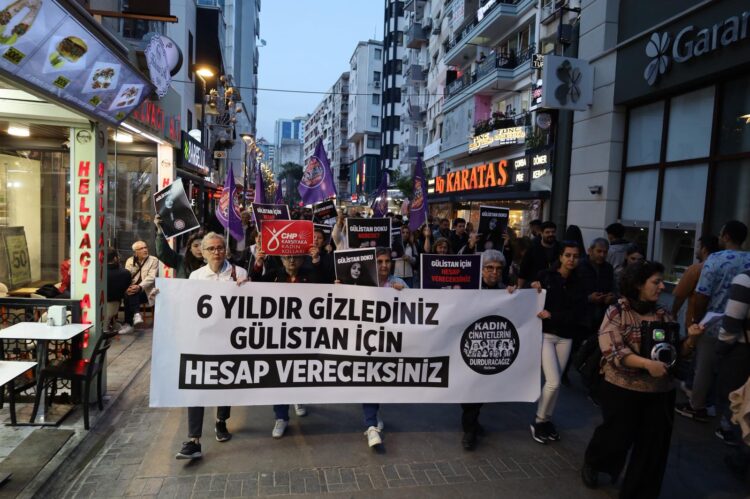 Platforma Em ê Kuştina Jinan Rawestînin (KCDP), derbarê dosyaya Gulistan Doku ya ku di 5ê çileya 2020an de li Dêrsimê hatibû windakirin de daxuyaniyek da çapemeniyê. Jinên ku li serê cadeya Kibris Şehîtlerî civiyan, heta Navenda Çandê ya Turkan Saylan meşiyan. Di daxuyaniya ku pankarta “We 6 salan veşart, hûn ê hesabê Gulistan bidin” hat vekirin, dirûşmên “Em ê hesabê Gülistan bipirsin”, “Em ê kuştina jinan rawestînin”, “Em bêdeng namînin, em natirsin, em îtaet nakin” û “Kujeran neparêze, darizîne” hatin berzkirin. Gelek jin beşdarî daxuyaniyê bûn û metna çapemeniyê ji aliyê Nûnera Platforma KCDPê ya Îzmîrê Elif Selin Erel ve hat xwendin.