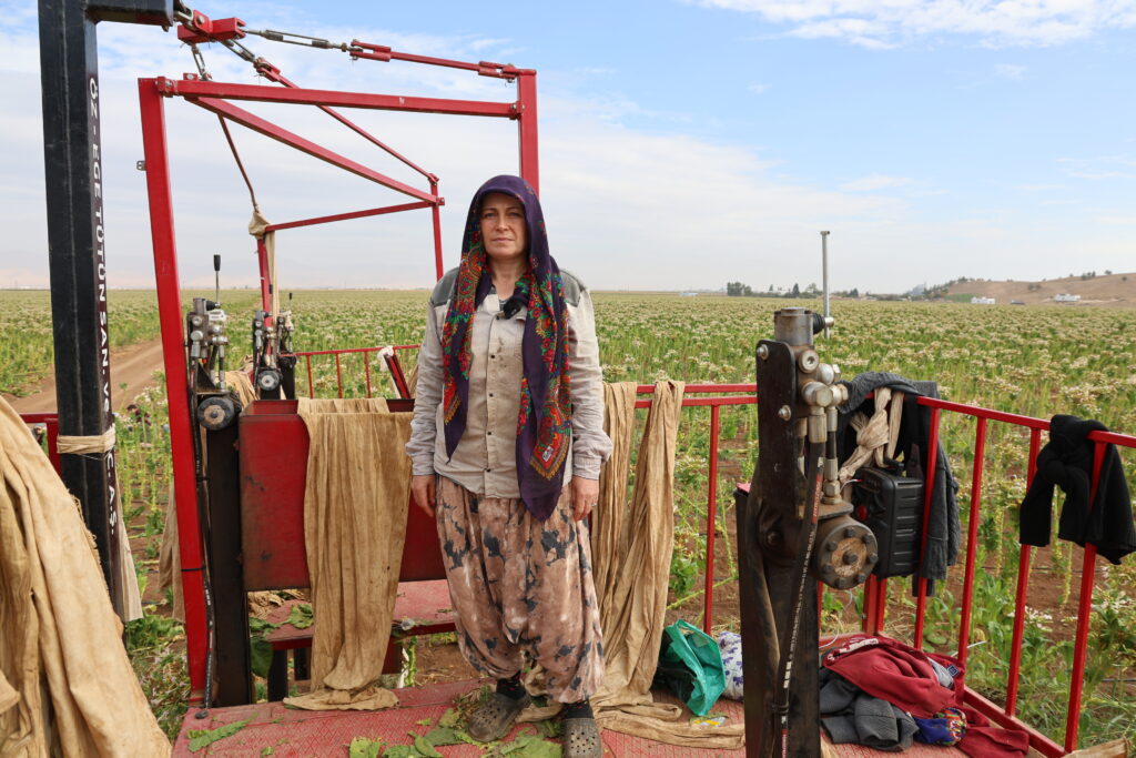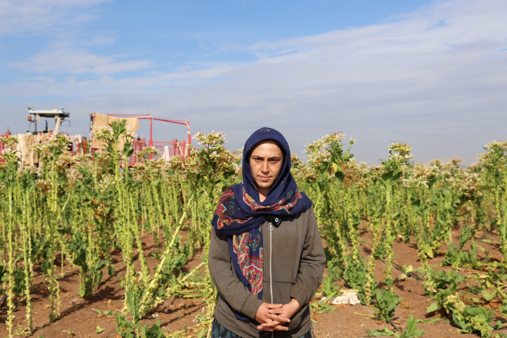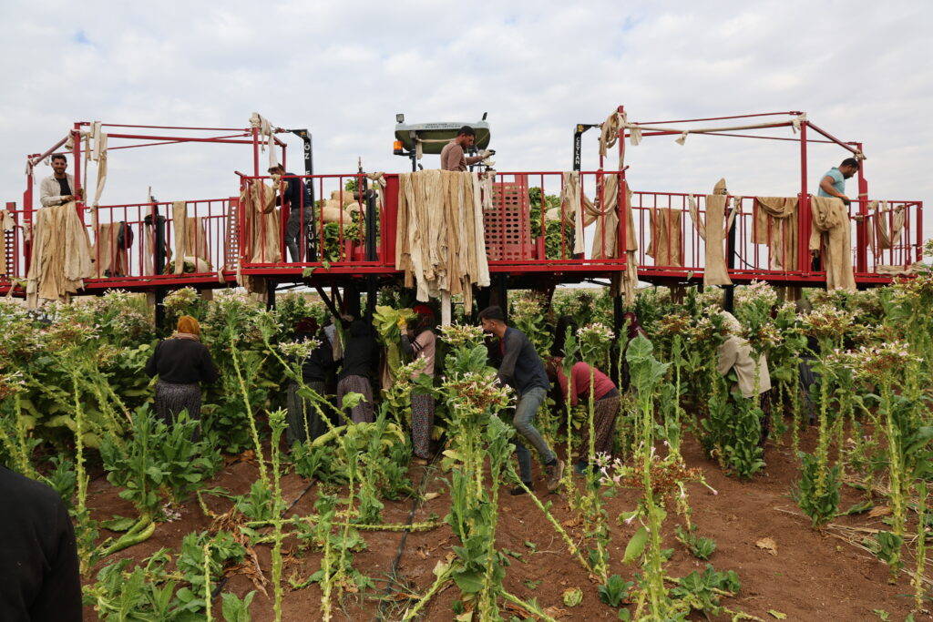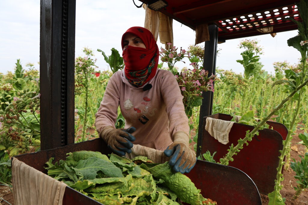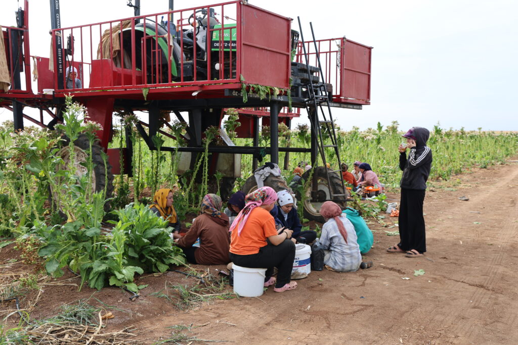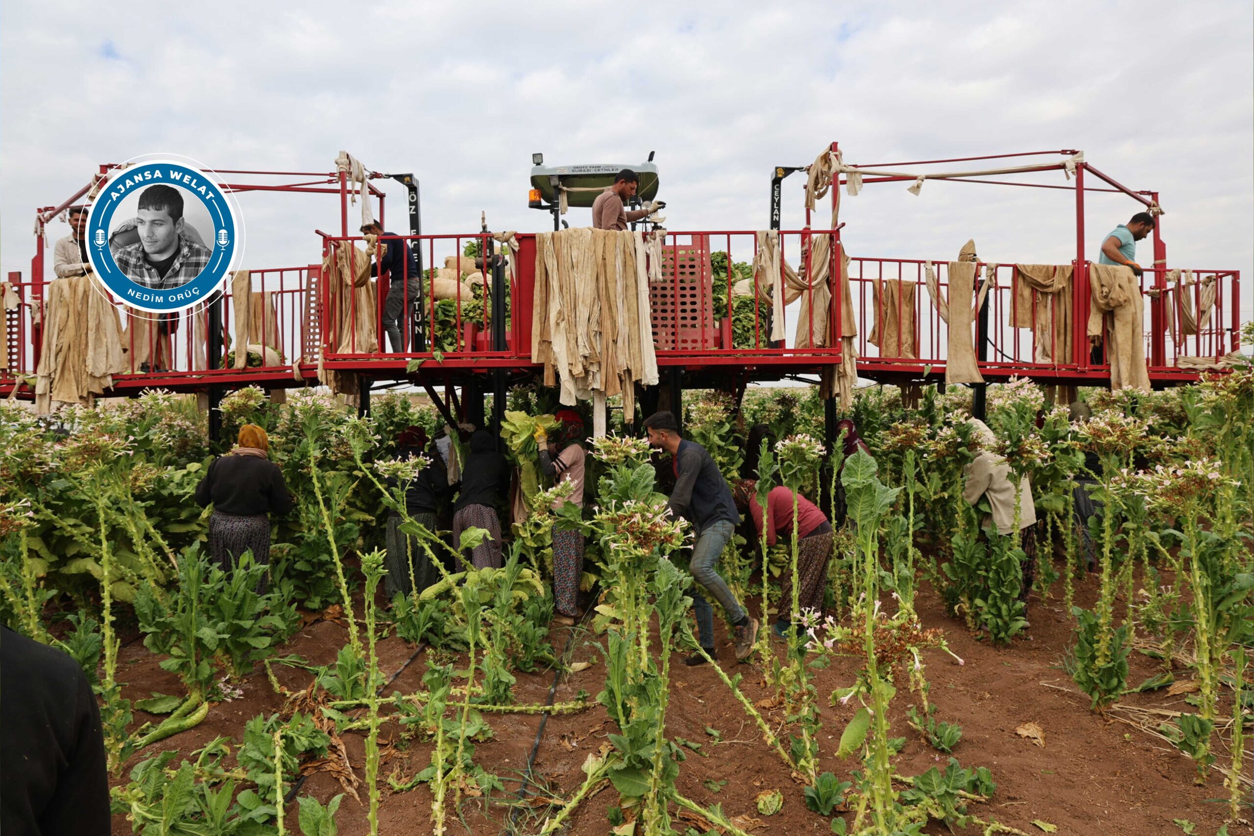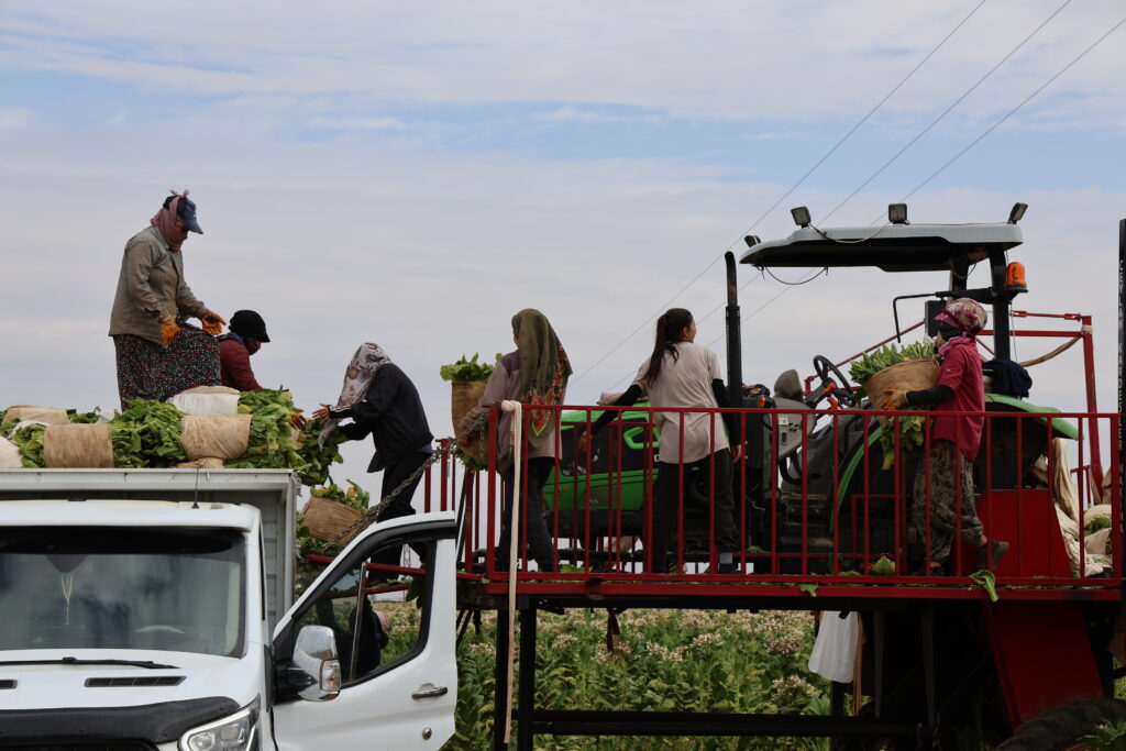 Selma Sayan ku li ser platforma traktorê dixebite da zanîn ku li ser platforma berhevkirina tûtinê kêm kesan didin xebatandin û wiha got: “Li şuna 4 kes li ser platformê bixebitin 3 kesan didin xebitandin. Ev jî dibe sedem ku em bêtir biwestin.”
