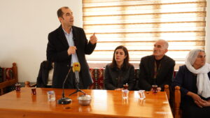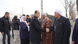 Hevserokê Giştî yê Partiya Herêmên Demokratîk (DBP) Keskîn Bayindir li gel rêveberên DBPê, DEM Partiyê û Hevşaredarên Çinarê serdana gundên Melepolat û Elwendiyê yên navçeyê kir. Di serdana gundan de gel ji bo mitîngê hate vexwendin. Heyet pêşî çû serdana gundê Melepolatê. Li mala şînê ya gund Keskîn Bayindir û heyeta pê re bi gundiyan re civiyan û behsa pêvajoyê hate kirin. Keskîn Bayindir li vir axivî û bal kişand ser girîngiya mitîngê.