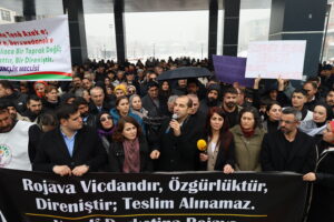 Hevserokê Giştî yê DBPê Keskîn Bayindir li Mûşê di çalakiya ji bo Rojava de axivî û bal kişand ser polîtîkayên desthilata Tirkiyeyê û got: “Biratiya wan durûtî ye, ev siyaseta qirêj û dijminatiya we, wê bi ser nekeve.”