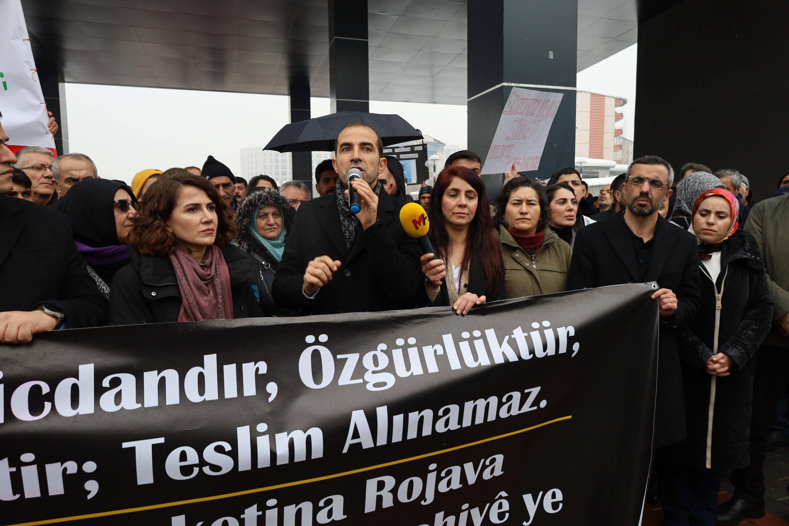 Hevserokê Giştî yê DBPê Keskîn Bayindir li Mûşê di çalakiya ji bo Rojava de axivî û bal kişand ser polîtîkayên desthilata Tirkiyeyê û got: “Biratiya wan durûtî ye, ev siyaseta qirêj û dijminatiya we, wê bi ser nekeve.”