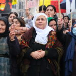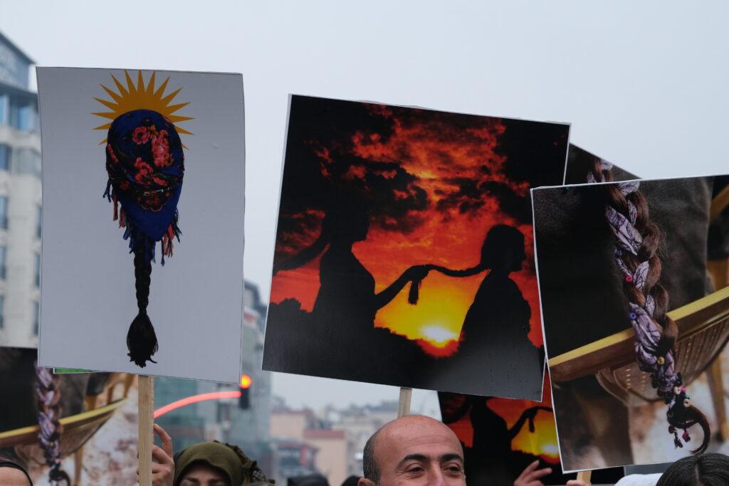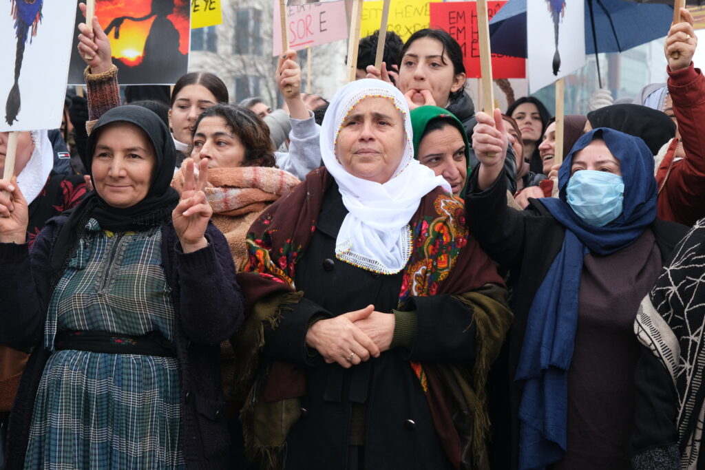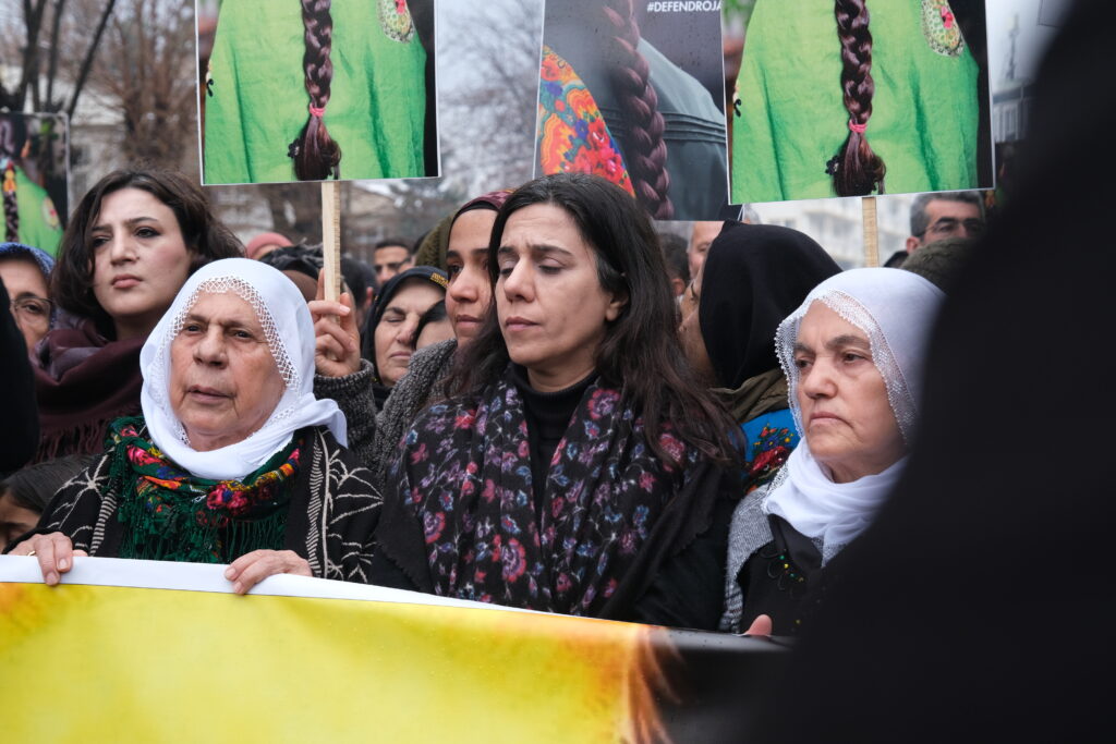 Hevserokê Giştî yê DBPê Keskîn Bayindir di meşe de bertek nîşanî medyayên ku piştgiriyê didin HTŞê û got: “Serê zarokên Kurd jê dikin û jinan ji avahiyan diavêjin. Piştre li Enqerê dibêjin ‘Em bira ne.’ Em biratiyek wisa şermezar dikin. Em vê yekê qebûl nakin. Her roj daxuyaniyên piştgiriya HTŞê tên dayîn. Hey mirovên bêdil hey mirovên bêexlaq, hûn wan kesên ku cenazeyên ciwanên Kurd dişewitînin, zarokan dişewitînin û jinan dikujin pîroz dikin. Ev çi wijdan e? Ev çi mirovahî ye?”