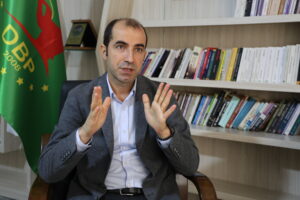 Amed – Hevserokê Giştî yê DBPê Keskîn Bayindir ku di nav şandeya çûbû Rojava de cih girt, çavdêriyên xwe yên wê derê vegotin û destnîşan kir ku heta gelê Rojava bigihîje statuyekê divê gelê Kurd li ser pêya be û li ber xwe bide, piştgiriyê Rojava bike.