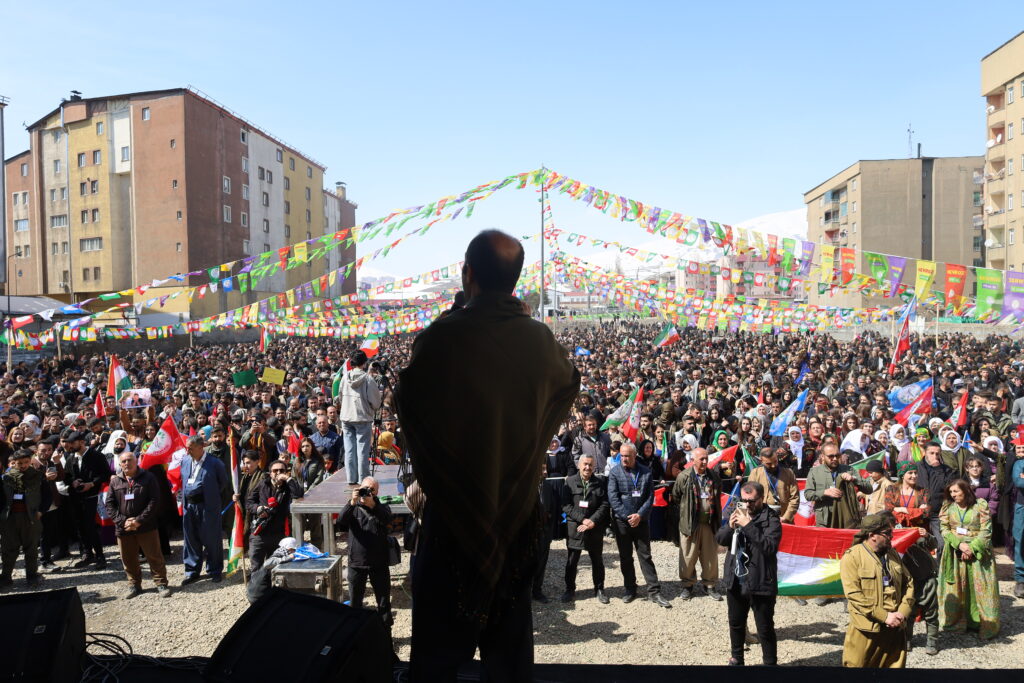 Li navçeya Geverê ya Colemêrgê bi şîara, “Newroza Azadî û Yekîtiya Demokratîk” li qada fûtbolê pîrozbahî hate lidarxistin. Hevserokê Giştî yê DBPê Keskîn Bayindir û Parlamentera DEM Partiyê ya Colemêrgê Oznûr Bartin, nûnerên partiyên siyasî û rêxistinên sivîl, Dayikên Aştiyê û bi deh hezaran welatî beşdarî pîrozbahiyê bûn. Welatiyên Geverê bi cil û bergên neteweyî û rengên kesk, sor û zer hatin qada Newrozê. Li qadê coş û kelecaneke mezin xwe raxist ber çavan û dirûşmeyên, “Bîji Serok Apo”, “Jin, jiyan, azadî”, “Bê Serok jiyan nabe” û “Yek e yek e yek e gelê Kurd yek e” bênavber hatin berzkirin. Gelê Geverê daxwazên xwe yên ji bo ziman û çanda Kurdî bi pankarta “Bila zimanê Kurdî bibe zimanê fermî û perwerdehiyê” li qada Newrozê anîn ziman.