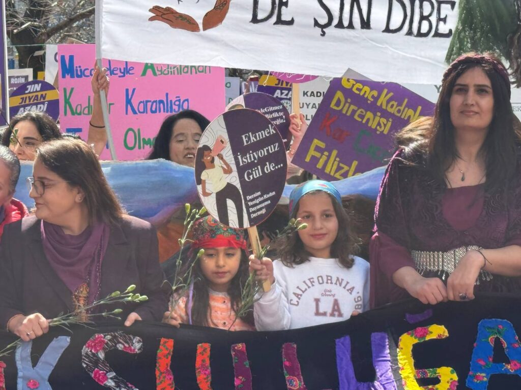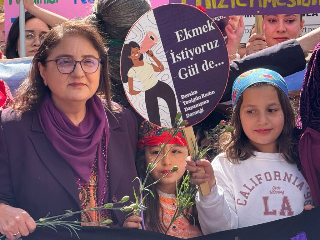 Wekîla DEM Partî yê Dêrsimî Ayten Korduye zî mîtîng de qisey kerd û wina vat: “Raya ma, raya Zarîfe û raya Sakîneyana. Raya ma, raya Clara û Rosa ya. Ma Cinîkî, nayera tepîya her çî eve destê xo virazenîme. Rojhelato Mîyanên de Ceng est o, Emperyalîstî û Rejîmê Mollayan nêvazenîme. Pero cinîyan kişenê û kenê bindest. Ma welate xo de, kotî beno bivo, pîya gûrîyayîş û aştîye vazenîme. Rojhelato Mîyanênde, Kûrmancî, Elewî, Sûryanî û Erabî pîya weşîya xo ramnenê. Cinîke dîna hard û asmenî rê rindîye û aştîye ane.”