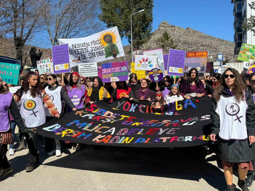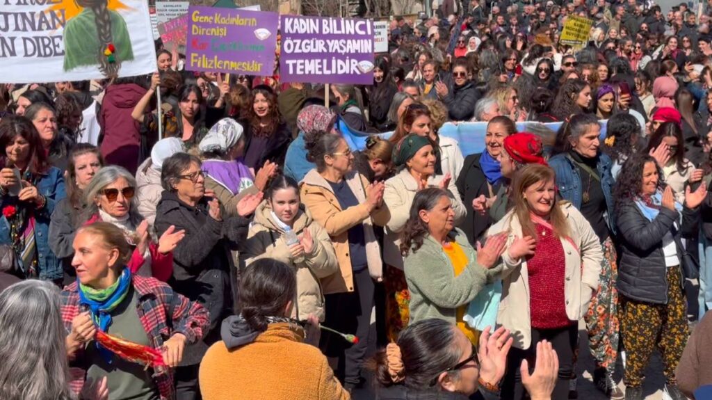 Dêrsim de pêşengîya Platformê Cinîyanê Demokratîk de seba 8ê Adare Mîtîng ame kerdene. Cinîyî Kûçeyê Hûnerî de amey peser û hatanû meydanê Sey Rizayî eve slogan eştene rayra şî û meydan de şahîya mîtîngî viraşte.