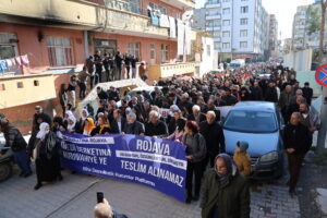 Platformê Sazgehanê Demokratîk ê Rihayî vera hêrişanê taxanê kurdan ê Helebî û Rojava qezaya Pirsûs a Riha de bi sloganê, “Rojava hêvî ye, wijdan e: Gelê Rojava ne bi tenê ye” rayîrşîyayîşêk organîze kerd. Birayê Rayberê Şarê Kurdî Abdullah Ocalan Mehmet Ocalan, Hemserekê Pêroyî yê DBP’yî Keskîn Bayindir, Hemverfeka DEM Partî Ayşegul Doagn, hemserek û rayberê partîyanê sîyasî, temsîlkarê sazgehanê komelkî, parlamenter û Hemşaredarê DEM Partî û bi hezaran weatijî beşdarê rayîrşîyayîşî bîyê. Rayîrşîyayîşî de pankartê “Xwedî derketina Rojava xwedî derketina mîrovahiyê” ame akerdene û sloganê dirûşmên “Bijî Berxwedana Rojava, Rojava Rojhilat e Kurdistan yêk welat e” Kujer HTŞ hevkar AKP” ameyê vatene.