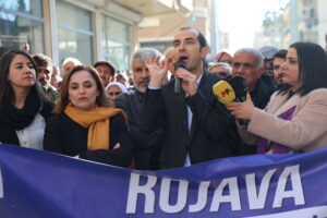 Ewilî Hemsereka DEM Partî ya Riha Ayşe Surucu qisey kerd. Ayşe Surucu hêrişî ke kurdan ser o yenê kerdene, şermezar kerdê û wina vat: “Ma Pirsûs de xoverdayîşê şarê kurdî yê seba azadîye silam kenê. Zerrîya ma şarê ma het de ya.”