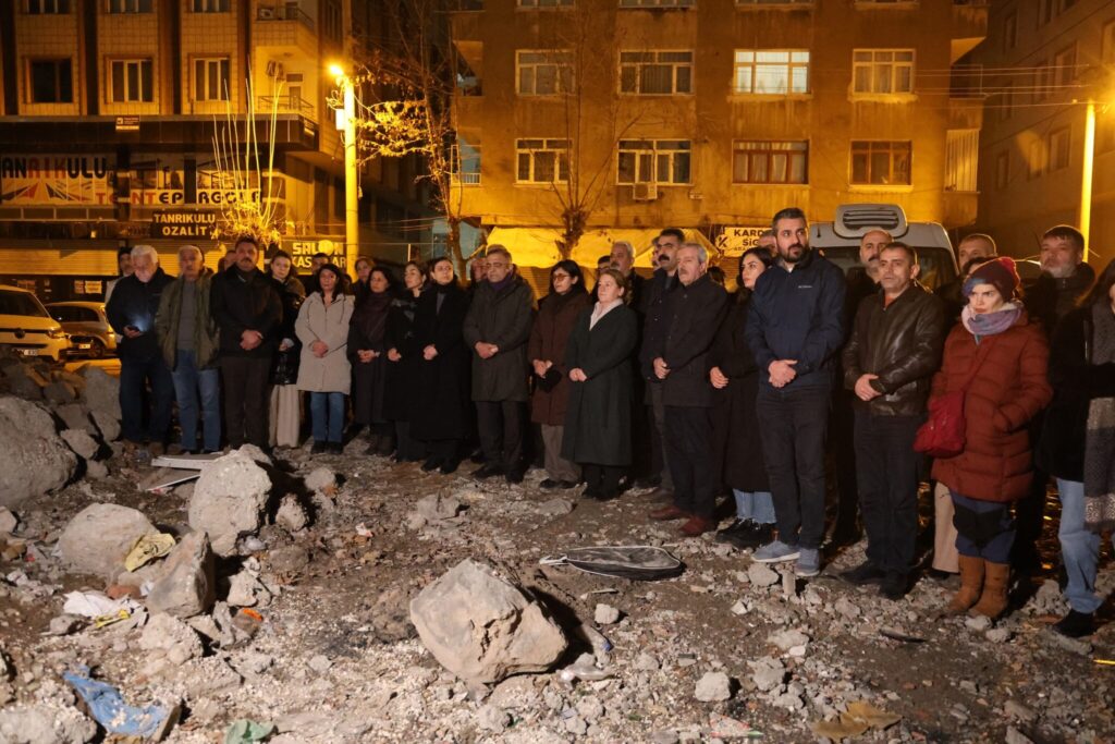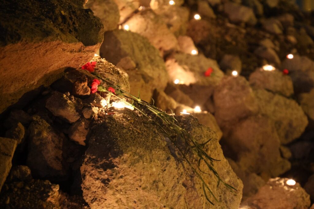 Verê destpêkerdena merasîmî kesê ke beştar bîyê serê şûna Apartmanê Sozelî yo ke erdlerz de weşanîyabî mûmî tavîstî û qaranfîlî ronayî. Dim ronayena qaranfîlan, saete 04:17ê şewe de seba kesanê ke weşîya xo dest dabî deqîqeyêk rêz ame girewtene.