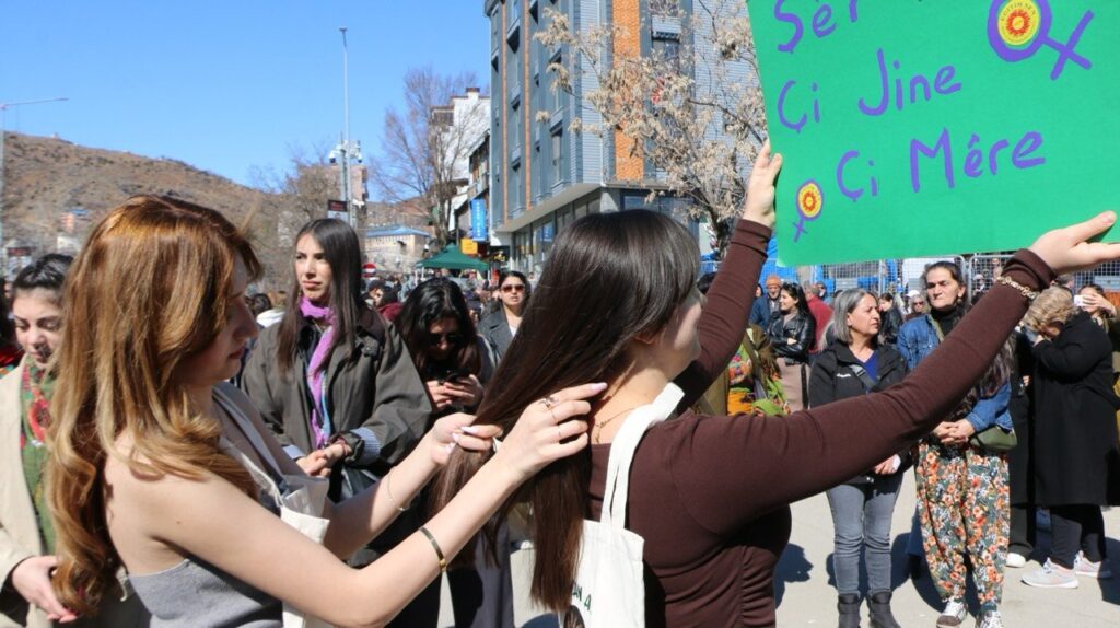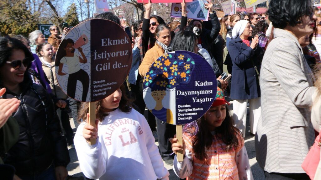 Cinîyê Dêrsimî nê 8ê Adare de seba aştî û azadîye keyeyanê xo ra vejîyayî û rayan, meydanan, kûçeyan de dima zî ameyî mîtîngê Dêrsimî de vengê xo berz kerd va: “Ma bîme, estîme, her ca de linganê xo ser derîme, waxt waxte Cinîyano.”