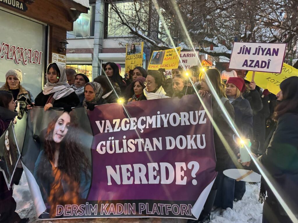 Serê nameyê platformê cinîyan Handan Qahraman Şanlî qisey kerd û wina va: “Gulîstan Dokuye endî bivînê, hatanû nika çira nêamê dîyayene? Ma hetanû ke Gulîstane amê dîyayene dawa xo ra nêbenîme.”