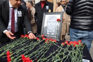 Tewr peynî de Hetkarê Hemserekanê Pêroyîyan ê DEM Partî Ozturk Turkdoganî qisey kerd û wina va: “Ma Alî Aydinî reyde bi serran mîyanê têkoşînê pawitişê heqan de bîyî. Alî, avûkatê heqîqet û edaletî bi. No ser ma xover danê.” Çalakîye bi sloganan qedîyaye.