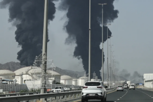 Îranî sey cewabê operasyonî hêrişê tesîsanê Lîmanê Fûjaîrah ê Yewîya Îmaretanê ereb kerd. Netîceyê hêrişanê fuzeyan de tesîsan de teqayîşê girdî virazîyayê û dima ra zî tesîsanê sotemenî de veşayîş vejîya.