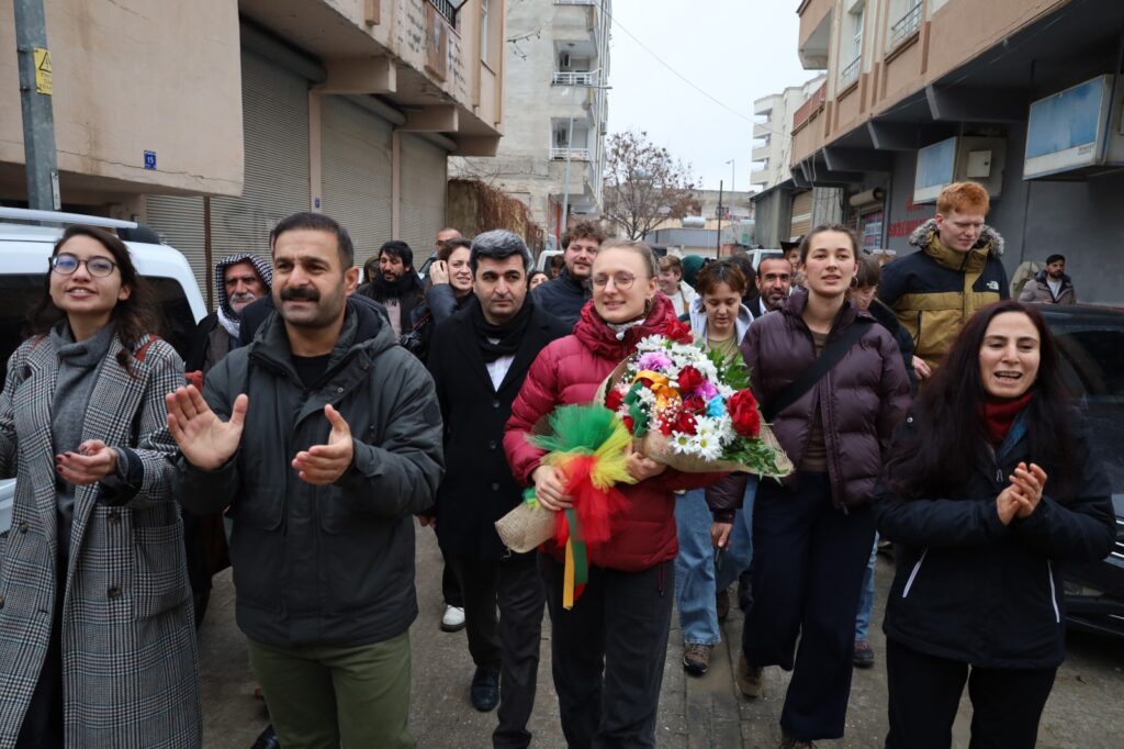 Pêşwazîkerdişî de sloganê, “Bijî berxwedana Rojava”, “Bijî berxwedana gelan” û “Jin, jiyan, azadî” ameyê vatene.