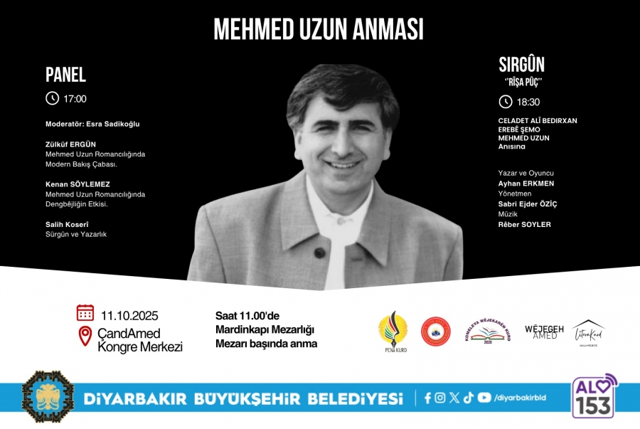 Merkezê Kongre yê Çand Amedî de seate 17.00 de panelêk yeno viraştene û tede hetê edebî û romannusîya Mehmed Uzunî yena qiseykerdene. Panelî de ke moderatorîya ci Esra Sadikogluye kena, nuştoxî Zulkuf Ergun, Kenan Soylemez û Salîh Koserî, babetê “Romannusîya Mehmed Uzunî de Cehdê Niyadayîşê Modernî”, “Romannusîya Mehmed Uzunî de Tesîrê Dengbêjîye” û “Surgunîye û Nuştoxîye” yenê qiseykerdene.