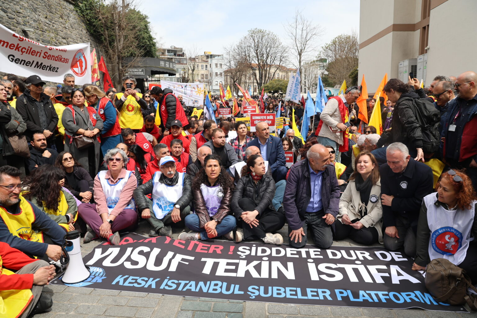Platformê Şubeyan ê Konfedarasyonê Sendîkaya Karkeran ê Pêroyî (KESK) yê Stenbolî vera hêrişan û mesûlîyetê rayedaranê îktîdarî ser o vernîya Mudirîyetê Perwerdeyî yê Şaristanê Stenbolî de dest bi çalakîya “Nobeta cuye” kerd. Girse Meydanê Sultanahmetî de kom bi, tîya de bi sloganê “Neyarê mamosta û wendekaran Yusuf Tekîn îstîfa” ame vatene û heta vernîya Mudirîyetê Perwerdeyî rayra şîyê.
