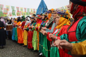 Îdir de bi şîarê “Newroza Azadî û Yewîya Demokratîk” Newroz ame pîrozkerdene. Duştê varanî zî cinî û ciwanan bi kincanê xo yê neteweyî renganê kesk sûr û zerd herikîyayê warê Newroze. Polîsan bi bahaneya “qedexeyê” dest da serê flamayanê kesk û sûr û zerd ê ke cinîyan ardbî ware. Pîrozbayîye bi govende dest pêkerd. Newroz bi deqîqeyêk rêzgirewtene seba vîrardena cangorîyan û bi taybetî di şexsê Endamê Konseya Hemserekîya PYD’î Salih Muslim de dest pêkerd. Pîrozbayî de sloganê “Bijî Serok Apo” û “Jin Jiyan Azadî” ameyê berzkerdene.
