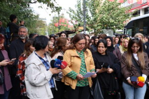 Dima Hemsereka Partîya Herêman a Demokratîke (DBP) ya Amedî Rûçem Elyakut zî eşkerayîya bi tirkî wende. Rûçem Elyakut dîyar kerd ke nê rojanê de ke awankerdişê komelê demokratîkî yeno nîqaşkerdene, tu nêzdîbîyayîşê ke tarzê cuya merdiman, bawerî û nasnameyê înan, azadîye û heqê înan hedef gêno, nêyenê qebulkerdene. Rûçem Elyakut dîyar kerd ke sere de şîdetê vera cinîyan do hemverê her tewir nêzdîbîyayîşanê şîdetê komelî afernenê, bi hewayêko çalak xover bidê û vat: “Ma do kulturê cuya pîya ke seserrî yo dewam keno, bidomnê û bipawê. Ma do desstûre nêdê ke nêzdîbîyayîşê asîmîleperest ke cîyayîyan sey sebebê cîyakarî vînenê.”