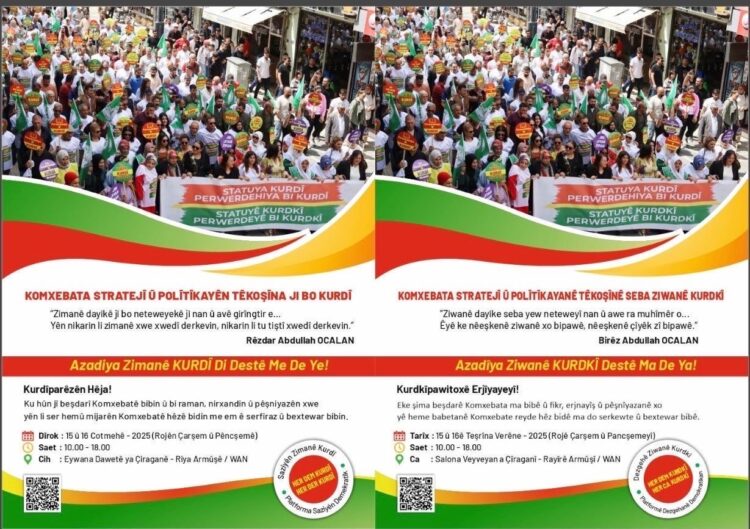 Sazgehê Ziwanê Kurdkî û Platformê Sazgehanê Demokratîk, Wan de 15 û 16ê aşme de komxebata bi nameyê “Stratejî û Polîtîkayê Têkoşînê Seba Ziwanê Kurdkî” organîze bikerê. Komxebata ke do Salona Veyveyî ya Çiraganî de bêra kerdene, do 2 rojî dewam bikera. Her roje do 4 grûbî babetanê xo eşkera bikerê. Zanyar, nuştox û kesayetanê namdaran ra vete, xeylê endamê sazgehan û şar zî do beşdar bibo.
