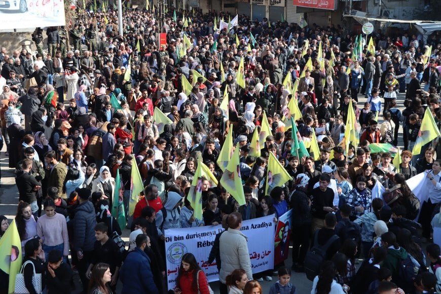 Şaristanê Qamişlo yê Vakur û Rojhelatê Sûrîye de bi hezaran kesî bi waştişê azadîya fîzîkî ya Rayberê Şarê Kurdî Abdullah Ocalanî rayîrşîyayîş organîze kerd. Rêxistinê girseyî yê demokratîk, temsîlkarê dîn û bawerîyan û bi hezaran welatijî vengdayîşê Meclîsê Şarî yê Qamişloyî çatrayîrê Sonî de ameyê têhet. Bi hezaran kesanê ke dest bi rayîrşîyayîşî kerd, zaf reyî sloganê “Bijî Serok Apo” vatî û posterê Abdullah Ocalan girewtê. Rayîrşîyayîş, merkezê şaristanî de dewam kerd û şar û bawerîyanê cîyayan ra xeylê kesan paştî daye rayîrşîyayîşî.