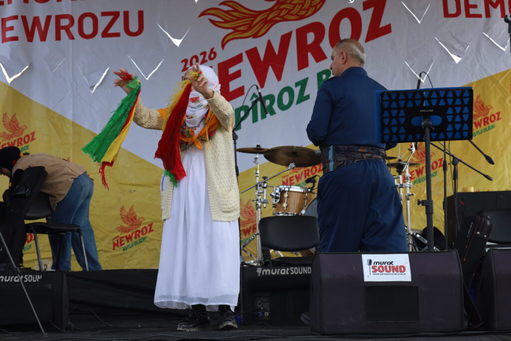 Ciwanan warê Newroze de û sahneye de posterê gird ê Rayberê Şarê Kurdî Abdullah Ocalanî û Salih Muslimî girewt. Fotografê Rahşan Demîrel, Sema Yuce û Kemal Kurkut zî ameyê girewtene. Deyîrbaz Devrîm Çelîk û Aylîn Demîrkaya sehne de deyîrê xo vatî û şarî govende girewte.