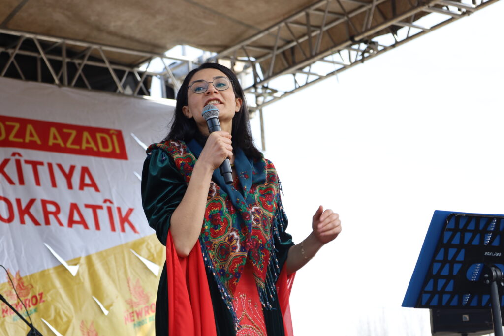 Parlamenter Mahmud Dîndarî zî qisey kerd û ard vîr ke b rojan oşarê kurdî qadan ra yo û vat: “Şar vano ke ganî verê Serekê ma azad bibo, wina no proses bi aramîye aver şino û serkewto beno. Ma zî warê Ehmedê Xanî de veng danê kenê ke ma zî dimayê paradîgmaya Abdullah Ocalanî yê û ganî Rayberê ma azad bibo ke herra ma biba baxçeyê gul û gulîstanan. Seserrî yo ke bi hezaran ciwanê ma şehîd kewtê. Eke ewro nê warî de ma eşkenê qisey bikerê no bi xêrê şehîdanê ma yo. Ma bi nameyê Salih Muslimî heme şehîdanê azadîye yad kenê. Gama ke ma vanê Newroze; Rahşan Demîrel, Mazlum Dogan, Zekîye Alkan… yenê vîrê ma. Bi adirê ke înan bi bedenê xo wekerd, adirê Newroze berz û geş beno. Eynî wext de gama ke ma vanê Newroze; Kemal Kurkut yeno vîrê ma ke bi hewayêko bêexlaq ame kiştene.”