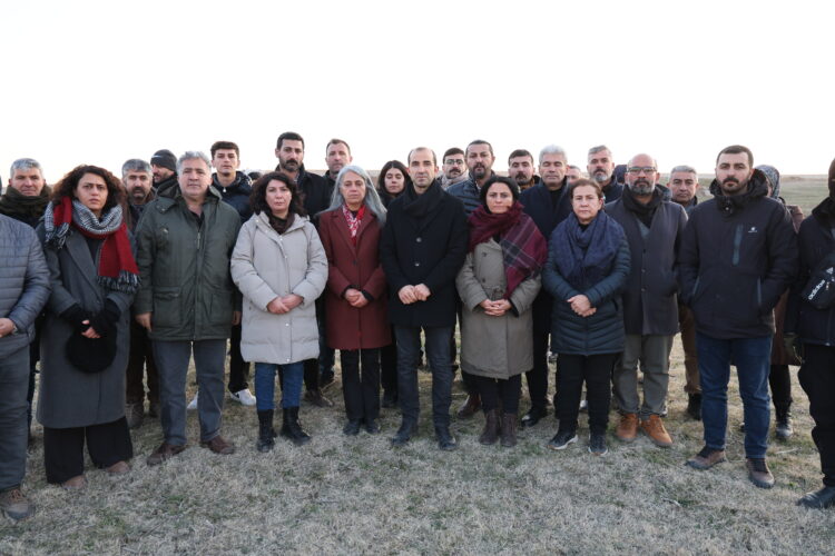 Hemserekê Pêroyî yê DBP’yî Çîgdem Kiliçgun Uçar û Keskîn Bayindir, DEM Partî, temsîlkarê rêxistinanê sîvîl û xeylê welatijî beşdarê nobete bîyê.