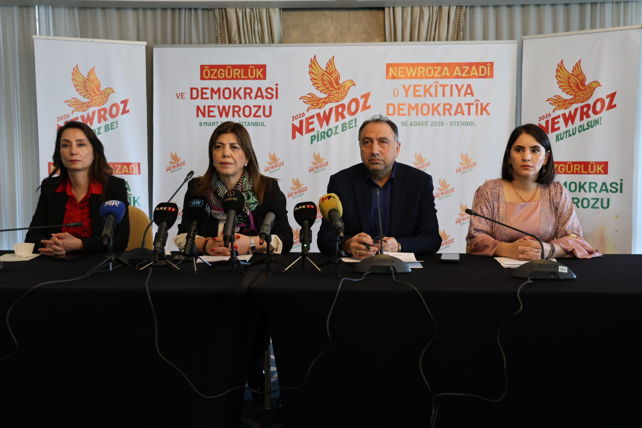Koordînasyonê Merkezî yê Newroze bi amancê eşkerakerdişê deklarasyonê Newroza 2026î Otêla Elîte World de kombîyayîşê çapemenî viraşt. Hemverfekê HDK’yî Meral Daniş Beştaş û Alî Kenanoglu, Hemsereka Pêroyî yê DEM Partî Tulay Hatîmogullari, aktîvîstê TJA’yî, endamê Meclisê Ciwanan ê DEM Partî, temsîlkarê partîyanê sîyasî, rêxistinê sivîlî yê komelî û xeylê hemwelatî tewrê kombîyayîşî bîyê. Parlamentera DEM Partî yê Şirnexî Newroz Uysal Aslan metnê bi kurmanci yê deklarasyonê wend.