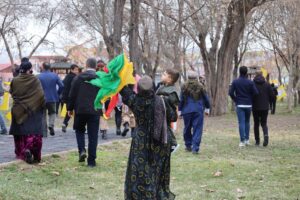 Hetê meydanî de xelekê govende ameyê girewtene û vengê def û zirna sloganê aştî reyde benê yew. Beşdarê Newroze bi heyacanêko girs paweyê dest pêkerdişê programî yê.