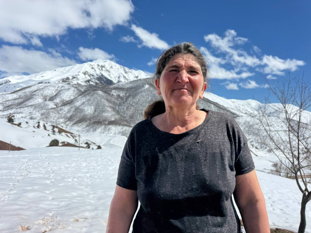 Îpek Sarîye, karê xo ser o wina vana: “Xeylê serrî yo ke dewar weye keno. Dewa ma Axponos a. 1994î de dewa ma kerde tal, bîme tever. Banê ma çin a, cayê ma çin o. La ma de najnîye mi est a. Jû bîrayê mi paştî danê mi. Karê ma zaf giran o. Zaf şîlî û şepelî est a. Vewre zaf a, simer qedîya. Alefe nîmend. Cayê ma çin bi, Zelîfa Polat, paştî daye ma. Dewa Agdad de le hûrenîye xo de ma rê ca da. Şî heqîya xo, welatê ma bêkes mend.”