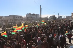 Bi hezaran welatiyên bajarê Kobanê ji bo parastina destkeftiyên şoreşê meşek bi dirûşma “Şoreşa me rûmeta me ye, em ê rûmeta xwe biparêzin” Ii dar xist.