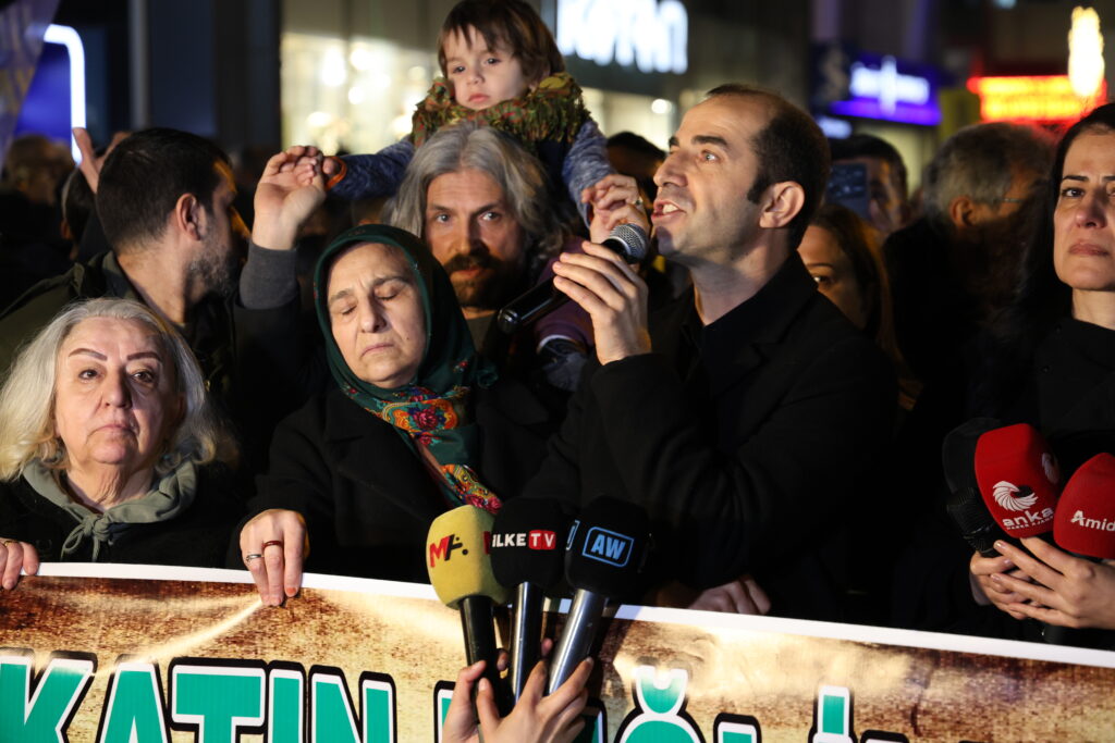 Girse bi tilîlî û çepikan gihişt ber Plazaya AZC ya li Semta Ofîsê ya navçeya Yenîşehîrê û li vir axaftin hatin kirin. Destpêkê Hevseroka Komeleya Piştevanî û Alîkariyê ya bi Malbatên Girtî û Hikumxwaran re (TUAY-DER) a Amedê Yeter Erel Tûma axivî. Yeter Erel Tûma diyar kir ku 15ê Sibatê tenê ne salnameyeke roja ku hewl hate dayîn gelê Kurd bê “Serok” bimîne û ji holê bê rakirine û wiha got: “Ji bo ku tarîtiyê ronî bikin em îro li vir in.”