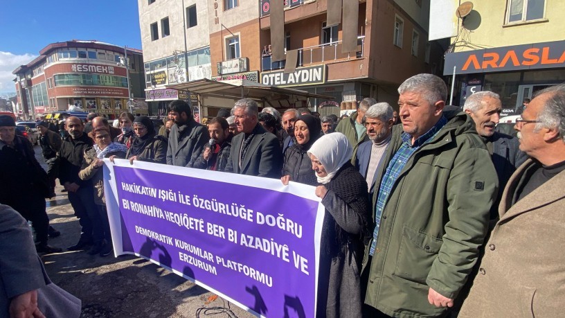 Platforma Saziyên Demokratîk a Erzirûmê, Komploya Navneteweyî ya 15ê Sibatê bi nîşandana sînevîzyon, meş û daxuyaniyekê şermezar kir. Bernameya li avahiya Rêxistina Bajar a Erziromê ya DEM Partiyê hate lidarxistin, bi deqeyek rêzgirtinê dest pê kir. Piştî nîşandana sînevîzyona derbarê Komploya 15ê Sibatê de, girse bi pankartên bi Kurdî û Tirkî yên bi nivîsa, “Bi ronahiya heqîqetê ber bi azadiyê ve” ber bi Qada Mahallebaşı ve dest bi meşê kir. Di meşê de bênavber diruşmeya, “Bijî Serok Apo” hate berzkirin. Hevserokê Rêxistina Bajar a Erziromê ya DEM Partiyê Barış Kemaloglu, axivî û Komploya 15ê Sibatê şermezar kir. Keremoglu wiha got: “Divê sîstema tecrîdê demildest bi dawî bibe, divê azadiya Birêz Ocalan demildest were misogerkirin û divê garantiyên yasayî ji bo pêvajoya danûstandinên demokratîk bên amadekirin.” Keremoglu balkişand ser êrişên li ser Rojavayê Kurdistanê û bang li gelê Kurd kir ku heta azadiya Ocalan û statûya Rojavayê Kurdistanê berxwedanê bênavber mezin bikin.