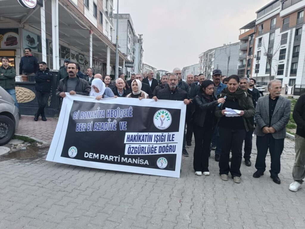 Meclîsa HDKê ya Îzmîrê û rêxistina DEM Partiyê ya Torbaliyê li dijî komploya navneteweyî li taxa Ataturk daxuyaniyek dan. Daxuyaniyê de dirûşma “Bijî Serok Apo” hate berzkirin. Daxuyanî ji aliyê Hevserokê Navçeya Torbaliyê ya DEM Partiyê Yavûz Aras ve hate xwendin.