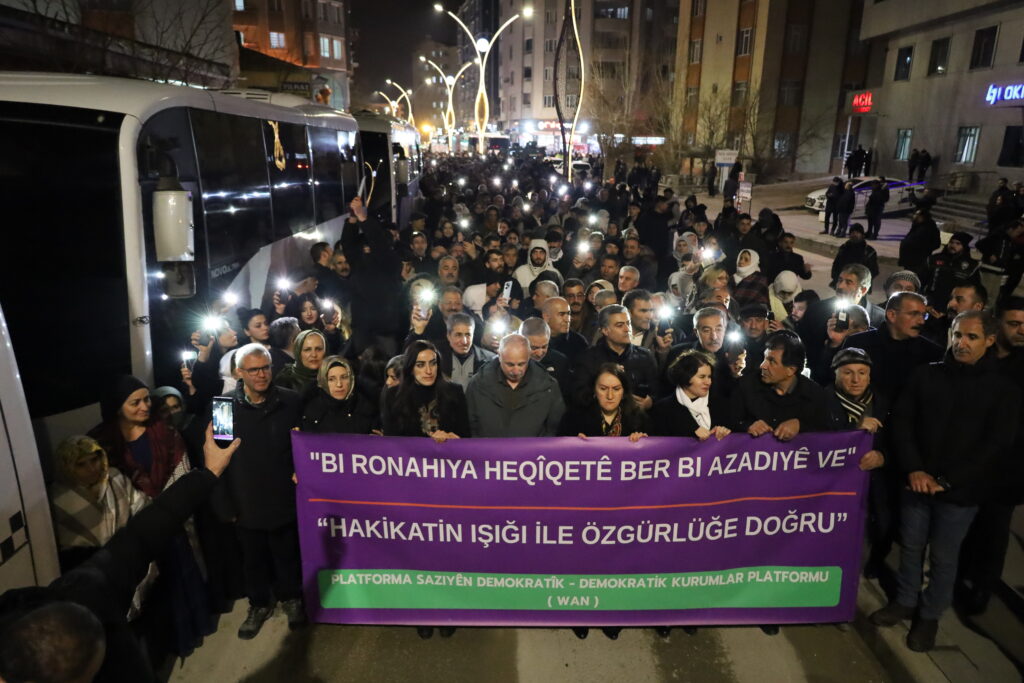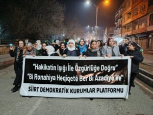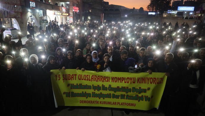 Platforma Saziyên Demokratîk a Bedlîsê ji bo şermezarkirina Komploya navdewletî ji Dibistana Seretayî ya Kazim Paşa heta meydana bajêr a Mizgefta Mezin meşek meşaleyî li dar xist. Gelek welatî beşdarî meşê bûn û dirûşmeya “Bê Serok Jiyan nabe” berz kirin. Piştî meşê hevseroka DEM Partiyê ya Bedlîsê Şevder Bîngul diyar kir ku 15ê Sibatê di dîroka Kurdan de rojek tarî ye.