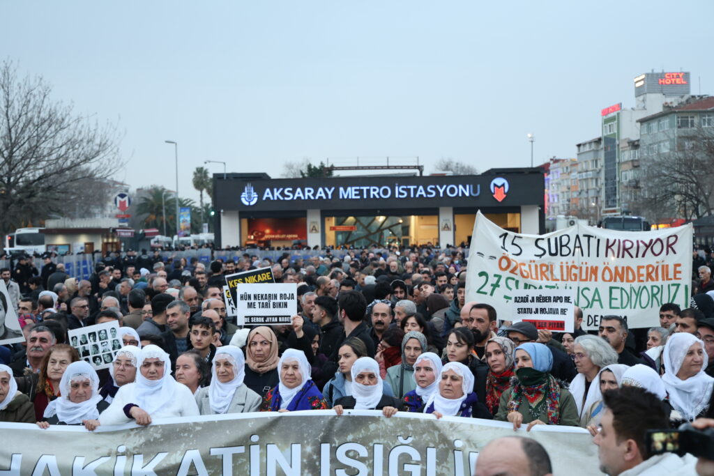 Platforma Saziyên Demokratîk a Stenbolê li Qada Aksarayê ya Stenbolê li dijî komploya navnetewî daxuyanî dan. Parlamenterên DEM Partiyê, Hevserokên DEM Partiyê yên Stenbol û navçeyan, Dayikên Aştiyê, HDK, TJA, nûner û rêveberên saziyên civakî û gelek welatî tev li çalakiyê bûn. Li qadê dirûşmeyên “Bijî Serok Apo”, “Bijî Berxwedana Rojava” Bê Serok Jiyan Nabe” hatin berzkirin û pankarta “Bi roniya heqîqetê ber bi azadiyê ve” û “15ê Sibatê dişkinî, bi rêberê azadiyê re 27ê Sibatê înşa dikin” hat vekirin. Hevseroka Stenbolê Arîfe Çinar di daxuyaniyê de axivî û got: “Bi têkoşînê komplo vale derket. Îro pêvajo heye lê hê jî tecrîd berdewam dike. Em dizanin ku pêvajo bi azadiya Rêberê Gelê Kurd Abdullah Ocalan ve girêdayî ye.”