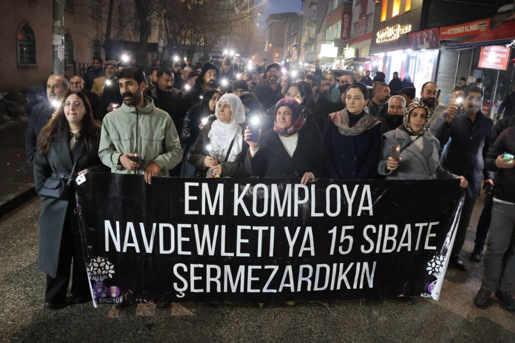 Platforma Saziyên Demokratîk a Agiriyê jî bi boneya 27emîn salvegera Komploya Navdewletî ya 15ê Sibatê meş hat lidarxistin. Girse ji Pirûtxaneya Gel heta Cadeya Cûmhûriyetê bi pankarta “Em komploya 15ê Sibatê şermezar dikin” meşiya û dirûşmên “Bijî Serok Apo” û “Bê Serok jiyan nabe” berz kirin.