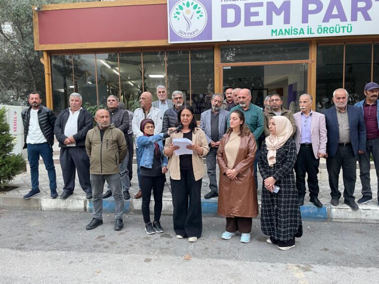 Girseya ku li ber avahiya DEM Partî ya Manîsayê kom bû, Komploya 9ê Cotmehê şermezar kir. Hevseroka DEM Partiyê ya Manîsayê Evîn Gunsel daxuyaniya bi Kurdî xwend. Evîn Gunsel komploya navneteweyî bi tundî şermezar kir û got, “9ê Cotmeha 1998an, ne tenê destpêka komployeke navneteweyî ye ku li dijî Birêz Ocalan Ocalan hatibû plankirin; di heman demê de mîladek e ji bo êrîşeke berfireh a li dijî hêviyên aştiyê yên gelên Kurdistanê û Rojhilata Navîn e.”