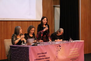 Hevberdevka Lijneya Rêveberiyên Xwecihî ya DEM Partiyê Canan Kebenç Ozkan axivî û bal kişand ser şerê taybet û kuştina jinan û got: “Sîstema ku kujeran bêceza dihêle, civakê hildiweşîne. Wekî di bûyerên Rojîn Kabaîş, Îpek Er û Narîn Guran de hat dîtin, kujer tên parastin. Heke di van dozan de gavên hiqûqî hatibin avêtin, ev bi saya têkoşîna jinan çêbûye. Em ê li dijî kujeran, pergala azadiya jinê bi hev re ava bikin.”