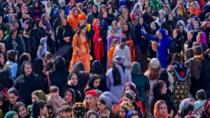 Yek ji dîmenên herî bi wate yên Newrozên Rojhilat, rîtma rengan e. Li bajarên wekî Sine, Îlam, Seqiz, Urmiye, Kirmaşan û Mahabadê, mîlyonan Kurd bi kincên Kurdî diherikin qadên Newrozan. Jinên Kurd lixwekirina kincên rengîn, li dijî polîtîkaya çarşefan ên rejîmê disekinin. Govendên ku li van bajaran têne gerandin, nîşana yekrêzî û hevgirtina civaka Kurd e.