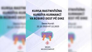 Weqfa Mezopotamyayê li Amedê li ser rastnivîsîna zaravayê kurmancî yê Kurdî kurseke bisertîfîka û rûbirû li dar dixe. Serlêdanên kursê di 18ê Mijdarê de bi dawî bibûn. Kursa ku bêpere ye dê di 22yê Mijdarê de li Çand Amedê dest pê bike û di 7ê Kanûnê de bi dawî bibe. Di kursan de dê têkildarî mijarên “Netewesazî û zimanê standard, cotstandardiya kurmancî, kurtedîroka rastnivîsîna kurmancî, bingehên fonolojik, morfolojik û semantik ên ferhenga standard, kêşeya veguhastinên navzimanî ji kurdiya soranî bo kurdiya kurmancî, rastnîvîsîn û prensîba parastina formen ferhengî, rastnivîsîna daçekan, rastnivîsîna karan (lêkeran), rastnivîsîna gireyên tewang û îzafeyê, çewtiyên berbelav ên rastnivîsînê, rastnivîsîna cotepeyv û peyvên qalibî û pratîk û nirxandin” ders bên dayîn. Dersan dê zimanzan Samî Tan, Zulkuf Ergun, Mîkaîl Bulbul û Bahoz Baran bidin. Nivîskar û rêveberê Weqfa Mezopotamyayê Bahoz Baran têkildarî kursê ji ajansa me re axivî.