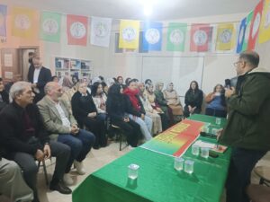 Ahmet Başboga di axaftina xwe de li ser girîngiya zimanê Kurdî axivî û bal kişand ser girîngiya bikaranîna zimanê dayikê di nav malbatê û jiyana civakî de. Başboga got ku ziman hilgirê nasname û bîranîna çandî ye û parastina zimanê Kurdî berpirsiyariyeke civakî ye. Piştî wî hevserok Evîn Gunsel axivî û li ser pêşketinên siyasî yên dawî nirxandin kir. Evîn Gunsel diyar kir ku têkoşîna ji bo zimanê dayikê yek ji sernavên bingehîn ên avakirina civaka demokratîk e.