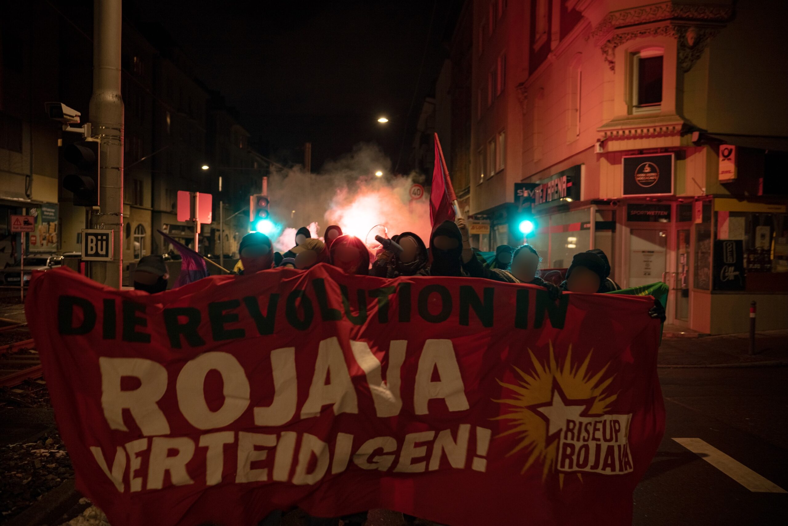 Li Stuttgart û Gostenhof êmeş hatin li darxistin. Ciwanan piştgiriya xwe ji bo Rojava anîn kolanan. Ciwanên tevlî meşan bûne ev tişt anîn ziman: “Herkes bila tevlî berxwedanê bibin. Bi çalakiyên mezin an piçûk ferq nake, dijminê Rojava li Almanyayê hene ku vê şer gur dikin. Pêwîste em li hember wan têbikoşin.”