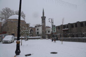 Amed – Amed û gelek bajarên Kurdistanê barîna berfê berdewam dike. Berfa bênavber bariye her der bi rengê spî xemiland.