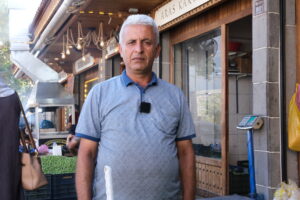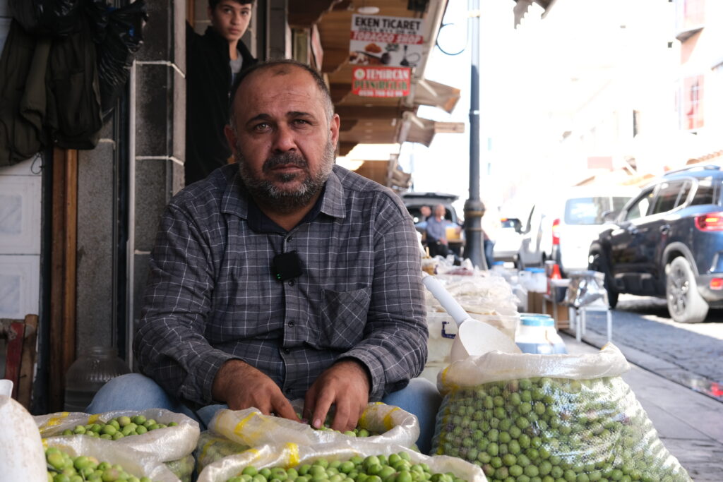 Firoşkar Murat Çîçek jî bi van gotinan qala karê xwe kir: “Ev zeytûnên şîn ji Îskenderûn û Hatayê tên. Dema em distînin kîlo tê 80 lîreyî em jî bi 90 lîreyî difiroşin. Em heqê kirê û hemaliya wî jî didin. Ev zeytûn gelek bi rûn in û bi goşt in. 7-8 sal in min li vir dikan vekiriye. Sala çûyî me kiloya wan dida bi 60î îsal jî em didin 90î û gelek cudatî heye. Ew cuda tî jî ji bihabûna mazotê ye û em jî mecbûr dimînin ku 20-30 lîreyî biavejin ser neqliyatê da ku em jî zirar nekin. Yên şîn bêhtir tên firotin û milet ji sedî 10 ên reş dixwin û ji sedî 90 jî zeytûnên şîn dixwin.”