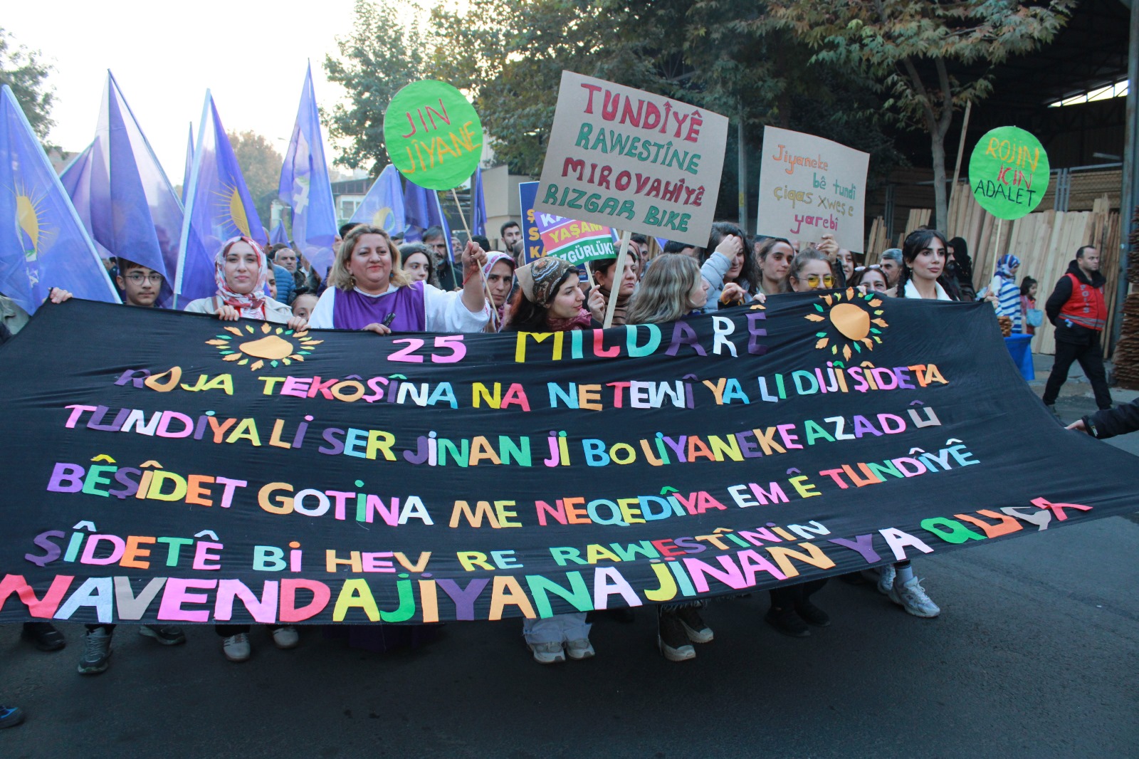 Bi pêşentiya Platforma Dîcle Amedê û Tora li dijî Tundiyê li Amedê bi boneya 25ê Mijdarê Têkoşîna li Dijî Tundiya li Ser Jinan a Navneteweyî meşiyan. Meşa bi sedan jin tevlî bûn li ber girtîgeha Hejmara 5emîn destpê kir û dê li ber AZC plazayê ya semtê Ofîsê ya navçeya Yenîşehîrê ya Amedê biqede. Meşa jinan bi dirûşmeya “Jin jiyan azadî” dest pê kir.