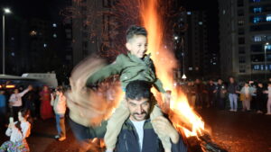 Girseyê bi berzkirina dirûmeyên ” Newroz pîroz be” û “Bijî Serok Apo” agirê Newrozê pêxistin. Pîrozbahiya Newrozê heta derengiya şevê bi gerandina govendê berdewam kir.