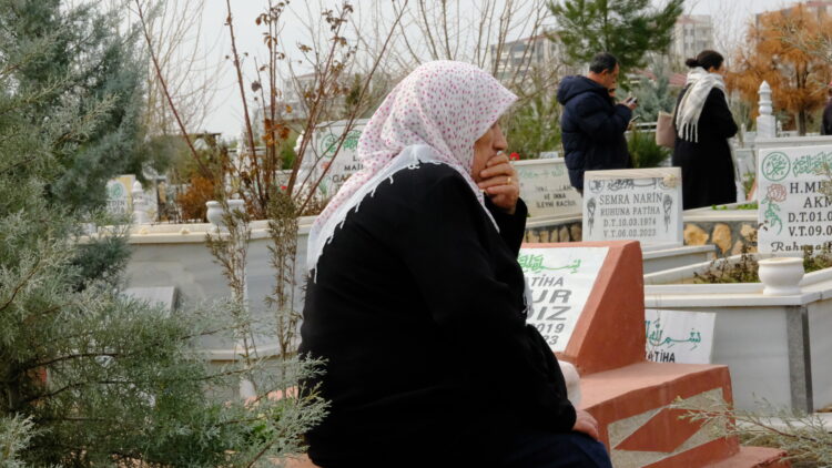 Malbatên kesên di erdheja 6ê Sibata 2023yan de jiyana xwe ji dest dane li Goristana Yenîkoyê li ser goran qurbaniyan bi diayan bi bîr anî.