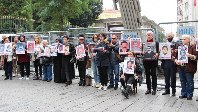 Hevjîna Fehmî Tosun, Hanim Tosun, piştre axivî û got, “Min 30 sal berê li vir dest bi têkoşînê kir. Mêrê min di dema binçavkirinê de winda bû. Lê min li vir têkoşîn da ku careke din kes winda nebe. Me winda nekir, ew winda dikin. Edalet di Qada Galatasarayê re derbas dibe.”