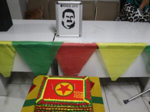 Rêxistina Partiya Wekhevî û Demokrasiyê ya Gelan (DEM Parti) a Bayrakliyê ya Îzmîrê, bi boneya 77emîn rojbûna Rêberê Gelê Kurd Abdullah Ocalan şahiyek li dar xist. Di şahiya ku li avahiya partiyê ya navçeyê hatî lidarxistin de posterên Rêberê Gelê Kurd Abdullah Ocalan hatin vekirin. Di dema pîrozbahiyê de gelek caran dirûşmên “Bijî Serok Apo” û “Rojbûna te pîroz be ey Serok Apo” hatin berzkirin. Gelek welatî beşdarî pîrozbahiyê bûn.